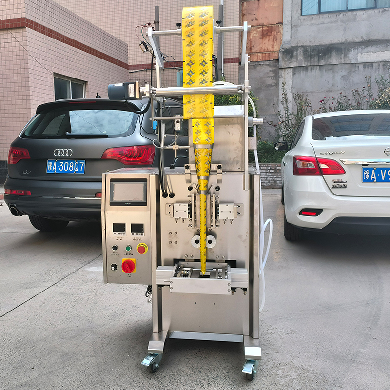 在食品、日化等行業內容,小劑量的液體物料包裝非常難以把握,立式液體包裝機因精準、高效、便捷的工作方式,能夠針對于:辣椒油、小袋油汁、牛奶、果汁、鮮奶等流動性強的液體物料包裝,立式液體包裝機集多項功能于一體化的設計,為企業提供了可靠的生產方案,經過軟件的配合,小袋油汁包裝機能夠完成5-8人的工作量。